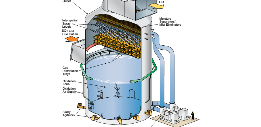 Theo công nghệ của nhà máy điện than, khói từ lò hơi sinh ra sau phản ứng cháy đi qua hệ thống SCR để khử NOx, sau đó qua bộ hâm nước (Economizer), qua bộ sấy không khí (Air Heater) đến bộ lọc bụi tĩnh điện (ESP). Khói ra khỏi ESP đi qua quạt khói (ID Fan). Ra khỏi quạt khói, khói thải được chia ra 2 nhánh, 1 nhánh đi thẳng ra ống khói đường dẫn khói này gọi là đường đi tắt (Bypass), chỉ sử dụng khi hệ thống FGD bị sự cố. Khói nóng đi qua bộ sấy khói (Gas Gas Heater) thì được làm nguội xuống và đưa vào tháp hấp thụ, khói sạch sau xử lý được đưa qua bộ GGH để nâng nhiệt độ lên trước khi thải ra môi trường qua ống khói – tránh đọng sương gây ăn mòn đường khói.